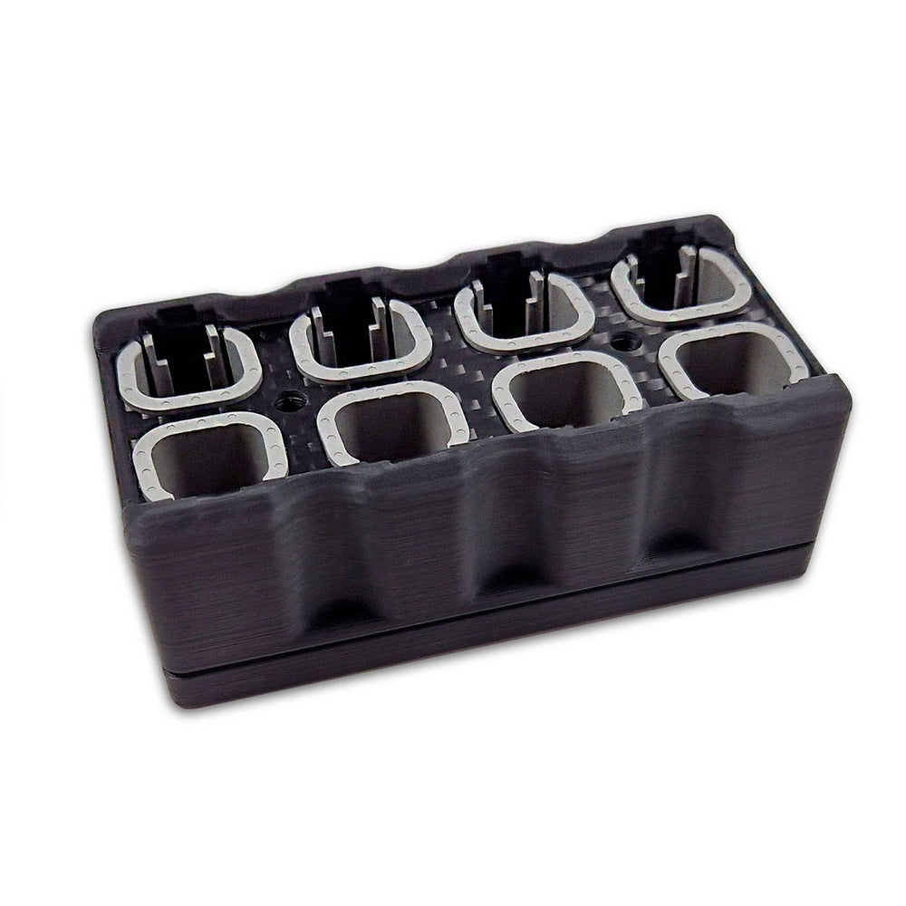 Measuring just 96x47x33mm, the box is very compact and fits anywhere. The sockets are modeled after the widely used DTM04-4P. Matching mating connectors are the DTM06-4S, which can be optionally purchased as a set of four under order number CC22101. We've drilled two holes in the center for mounting. Use the two included screws for this.