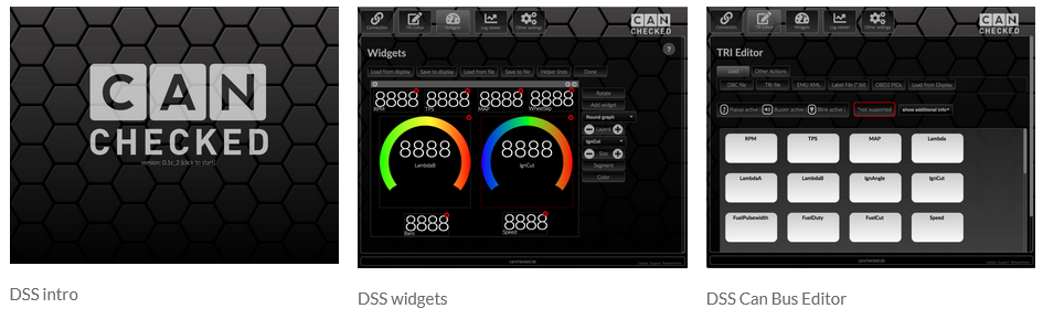 With our DSS - Display Setup Software, the display can be easily configured on the PC. The Can Bus protocol can be customized, you can import DBC files and design the displays with your widgets. The log viewer downloads log files from the display. You can then look at these and select and scale values individually.