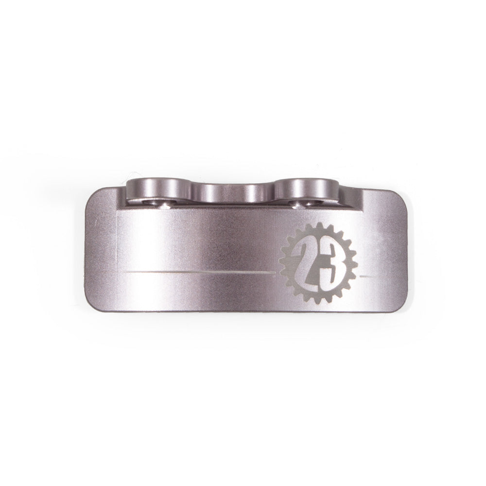 The Company 23 CNC-machined corner billet timing belt guides are designed to replace the flimsy factory corner guide with a stronger, more durable solution. Engineered to prevent timing belt skip during rapid acceleration or deceleration, this guide features a smooth interface that won’t damage the belt—even during catastrophic engine events, unlike standard OE guides. Its unique slotted mounting holes allow for easy adjustment to fit different manufacturers' timing belts, ensuring a perfect fit every time.