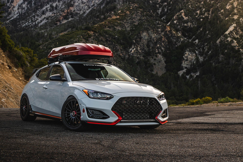 Bisimoto is no stranger to Hyundai tuning - back in 2019, Bisi approached CSF back in need of an upgraded intercooler for his factory-backed Veloster N SEMA project. Pushing the limits of the N platform, Bisi's car featured upgraded turbos and high-performance tuning, resulting in the OEM intercooler showing its weaknesses and inability to shed heat from the turbo system. With technology taken from CSF's #1 selling BMW N54/N55 intercooler, the front face of the intercooler features CSF's exclusive rounded bar/plate design, which aids the air entering the intercooler core by curving around the front bars rather than hitting and scattering on the surface of a traditional flat-bar faced intercooler. CSF's stepped-core design maximizes all of the available frontal area behind the front bumper and underneath the crash bar. The stepped-core protrudes upwards in front of the A.C. Condenser and sits just shy of the crash bar, for both the Veloster N and i30 N. Through prototype testing and data acquisition with Bisimoto, the decision was made to keep the OEM-sized inlet and outlet connections. This resulted in low pressure drop, even considering how much larger the CSF intercooler is - in addition, this feature removes the need to include costly and unnecessary silicone hoses, allowing CSF to offer the N community the best value, entering the market at the most aggressive price point.