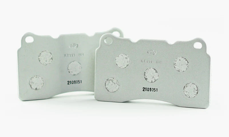 Elig Racing KT111 brake pads are designed for the driver who demands the highest performance from their entire braking system. They offer exceptional braking performance with an aggressive initial bite and fantastic pedal modulation over a wide and high temperature range.