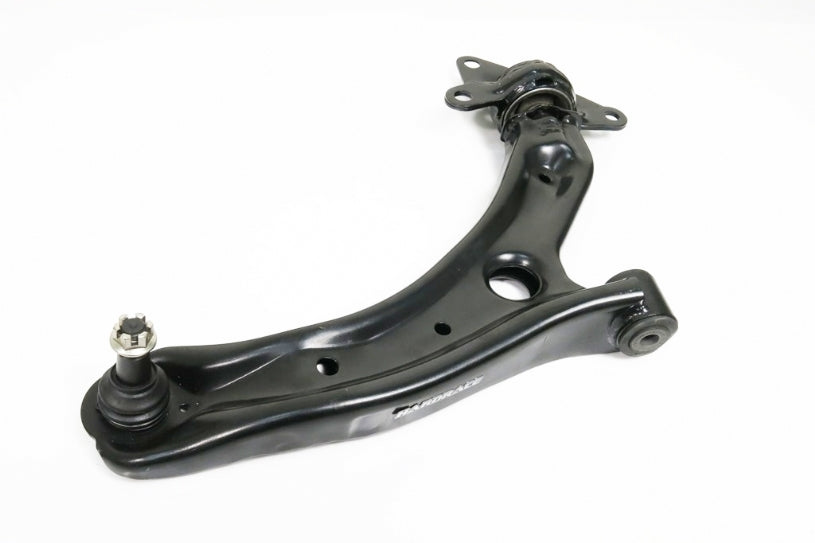 The control arm made with HARDENED steel and compound with superior quality bushing. A good control arm can regulate the movement of wheels quickly each time you turn or corner.
