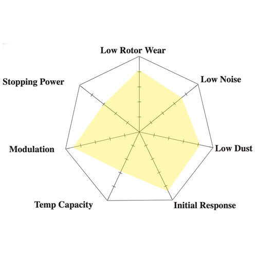 Hawk understands the needs of today's ceramic brake pad users and has specifically formulated our composite material to meet - and beat - the stringent low noise, ultra-low dust performance standards they have set. Engineered to reduce brake NVH (Noise, Vibration and Harshness), Performance Ceramic is a premium disc brake pad that delivers excellent performance mile after mile. Providing a linear friction profile that allows your vehicle's ABS system to operate most effectively, our unique compound has the advantage of never sacrificing power to achieve traditional ceramic pad attributes. With Hawk's PC, you can expect reduced brake pad wear, longer rotor life, and our quietest ride ever.