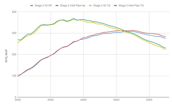 Dyno graph tested on a 2019 GTI with Stage 2 hardware & software on 93 octane