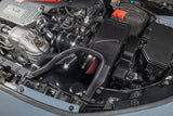 The factory rubber inlet connects to the box and extends over the core support. This rubber duct seals to the hood and channels air into the airbox via a duct in front of the radiator support. Our experience with the FK8 taught us the importance of keeping these cars cool during hard driving. Third-party testing revealed a 10-20hp loss when the hood is closed, indicating that the factory duct is a point of restriction. In response, we developed the secondary duct to address this issue of air starvation.