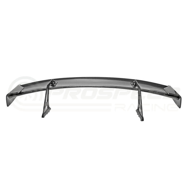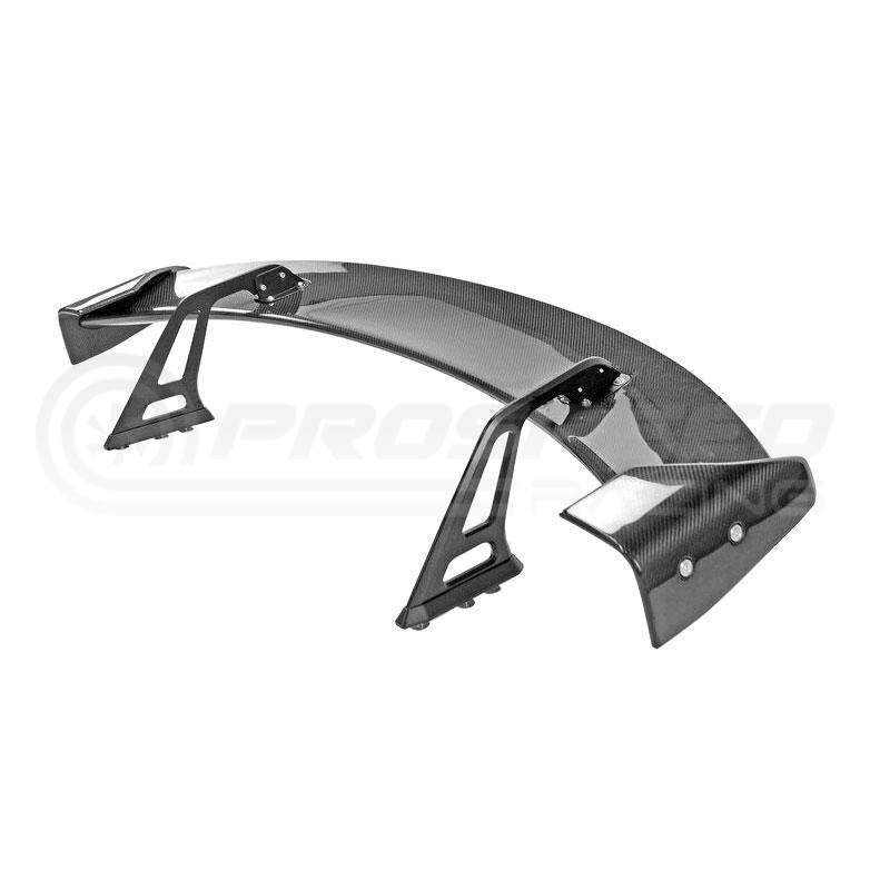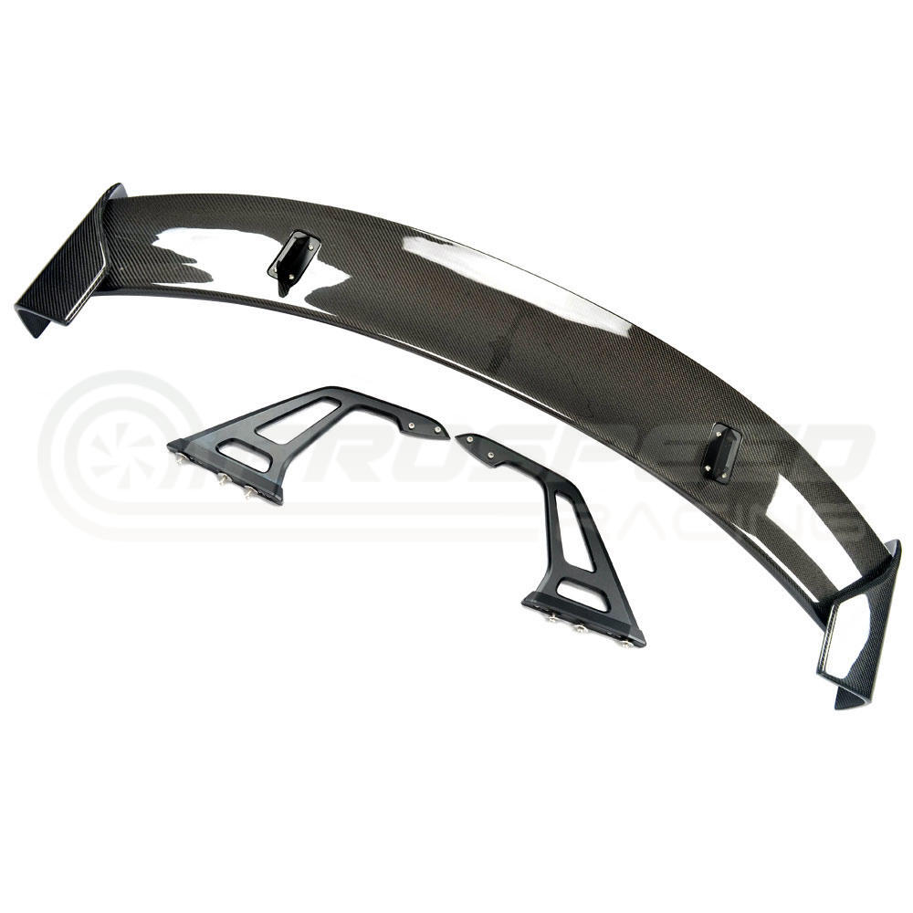 The AD Style rear wing is a hugely aggressive wing featuring swan-neck pedestals that mount to the top of the wing rather than from underneath which increases the downforce potential. The end plates are a unique curved design which wraps over the top surface of the wing. The wing element is contructed from 2x2 twill weaved Carbon Fibre with a high gloss finish. Installation will require drilling through the boot lid and is recommended to be installed by professionals. Includes installation hardware for fitment.