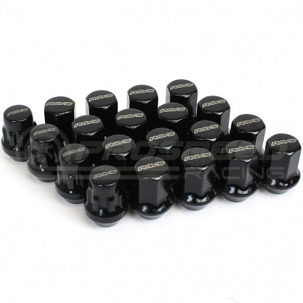 The Volk Racing Rays 17 Hex Lug Nuts are made from hardened steel. They are stamped with the Rays logo on the top and come 20 lug nuts per set with 4 locking lugs. Each 20 piece set weighs roughly 2lbs. These particular lug nuts come with the 12X1.50 thread pitch, and will come in a full set of 20 lugs which also include a special lug tool. These lugs will also come in a nice black finish to complement your wheels and theme!