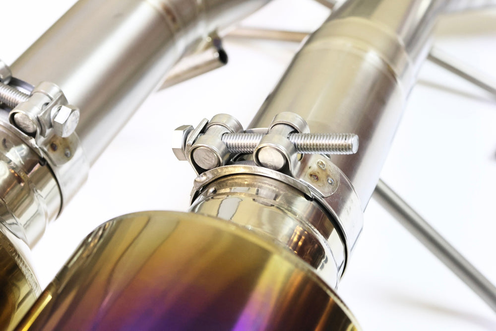 - Two 11.4 cm burnt titanium exhaust tips