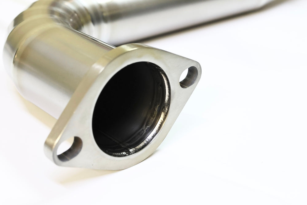 Each side weighs only 1.2 kg, providing a total system weight of 2.4 kg and a reduction of roughly 9.5 to 10.0 kg when compared with the bulky OEM units. The system is compatible with the factory mid pipe as well as direct fit aftermarket mid pipes, making installation straightforward.