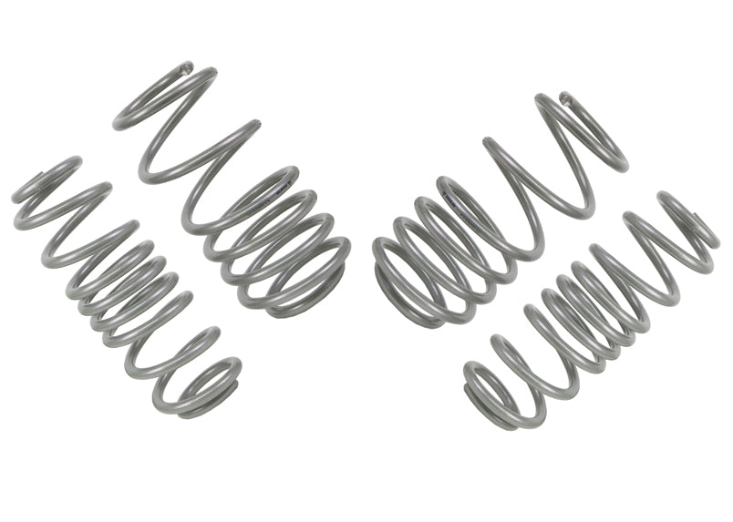 Whiteline Springs deliver improved vehicle performance whilst maintaining safety and ride quality characteristics. This kit contains 4.1kg/mm (229lb/in) front rated springs that provide a 25mm drop while the 3.5kg/mm (134lb/in) rated rears deliver a desirable 20mm to the vehicle. By lowering the vehicles centre of gravity, the unique and progressive rate coil design not only improve performance but enhance overall appearance. Developed and manufactured in Europe from the highest quality materials, coating and to the finest tolerances guaranteeing exact fitment. Whiteline Springs are engineered for optimal balance with OEM and aftermarket shocks. For total grip activation match with Whiteline Sway Bar and Essentials kit for unrivalled handling and optimal vehicle performance.