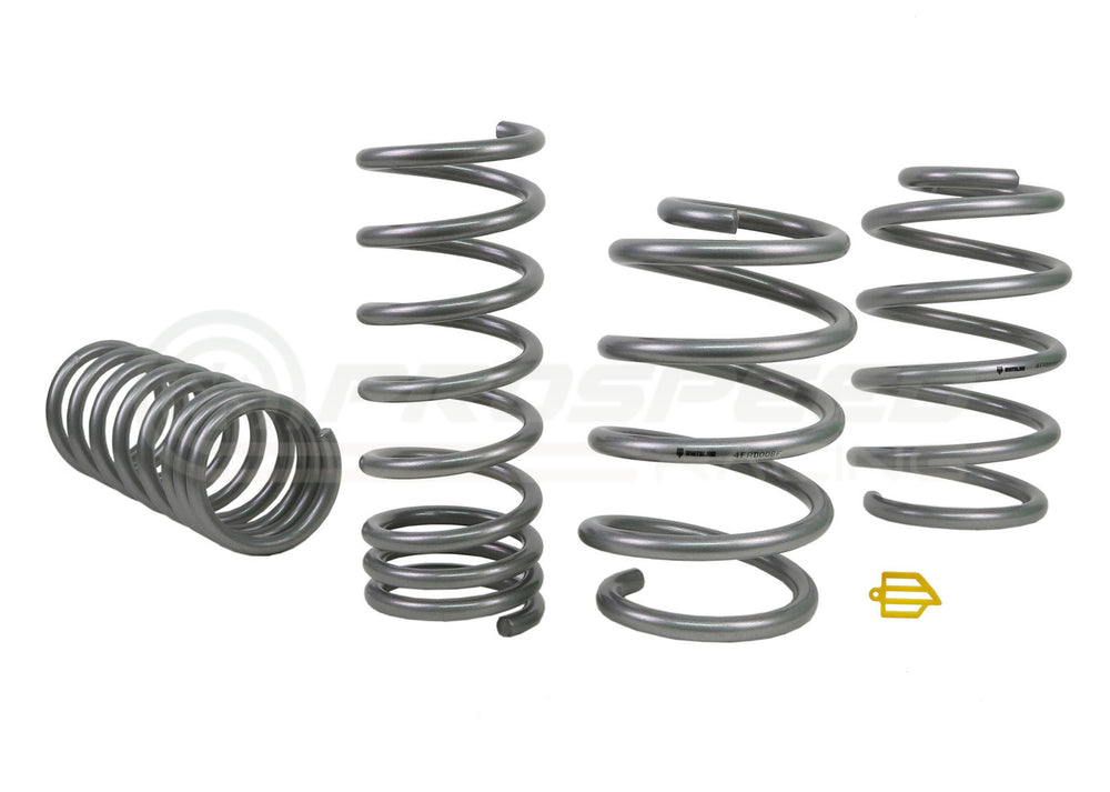 Whiteline Springs deliver improved vehicle performance whilst maintaining safety and ride quality characteristics. This kit contains 4.5kg/mm (253lb/in) front rated springs that provide a 25mm drop while the 5.3kg/mm (300lb/in) rated rears deliver a desirable 25mm to the vehicle. By lowering the vehicles centre of gravity, the unique and progressive rate coil design not only improve performance but enhance overall appearance. Developed and manufactured in Europe from the highest quality materials, coating and to the finest tolerances guaranteeing exact fitment. Whiteline Springs are engineered for optimal