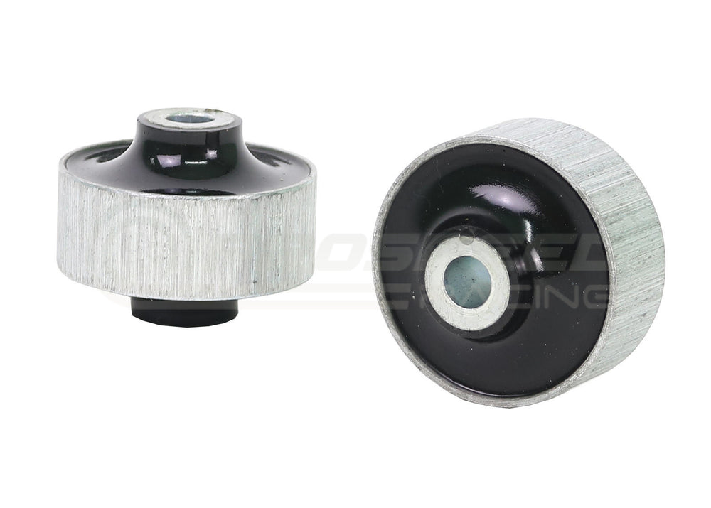 Worn front control arm bushings have a huge influence on vehicle stability, steering precision and braking efficiency. Replace worn bushings to as new condition utilising Whiteline's advanced synthetic elastomer bushings with core characteristics ensuring superior elasticity, memory and outright durability for all forms of driving applications.