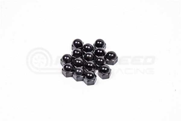 Replacement black acorn nuts for many Radium Engineering components (fuel pump hangers, fuel surge tanks, fuel cells, etc.). Prior to 2020, the provided 10-32 threaded acorn nuts were manufactured from nylon. These new 10-32 acorn nuts are machined from billet aluminum. To prevent electrical conductivity, they are than Type-II Anodized Black.